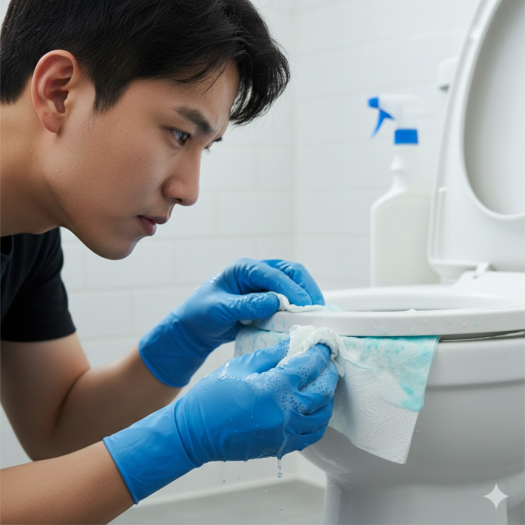 - 20분 방치 → 칫솔로 틈새까지 긁기 → 물 내리기